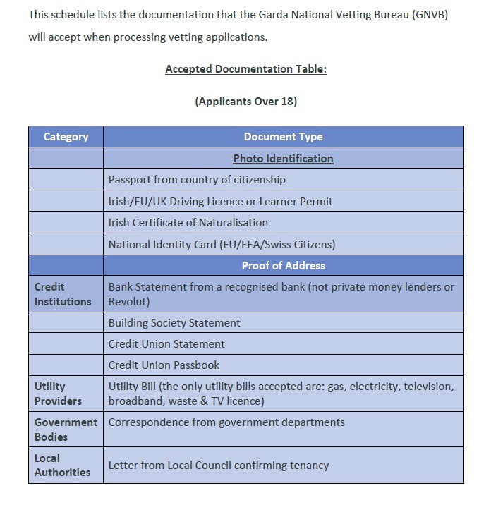 Under the National Vetting Bureau (Children and Vulnerable Persons) Acts, there is a legal requirement to vet any individual who is involved in coaching, supervising, or working directly with children or vulnerable adults.